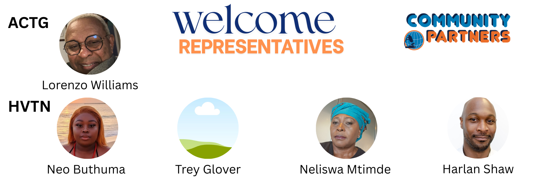Community Partners (CP): Community Partners welcomes new HVTN representatives Trey Glover, Neo Mbuthuma, Neliswa Mtimde, and Harlan Shaw. CP also welcomed Lorenzo Williams, ACTG GCAB Co-Chair, in December.